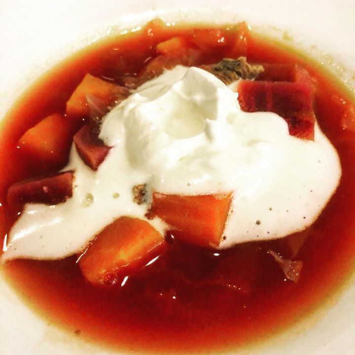 涼しくなって来たのとビーツがたくさん仕入れられたので温かいスープを作りました。牛肉と野菜のロシア風スープ〈ボルシチ〉です。