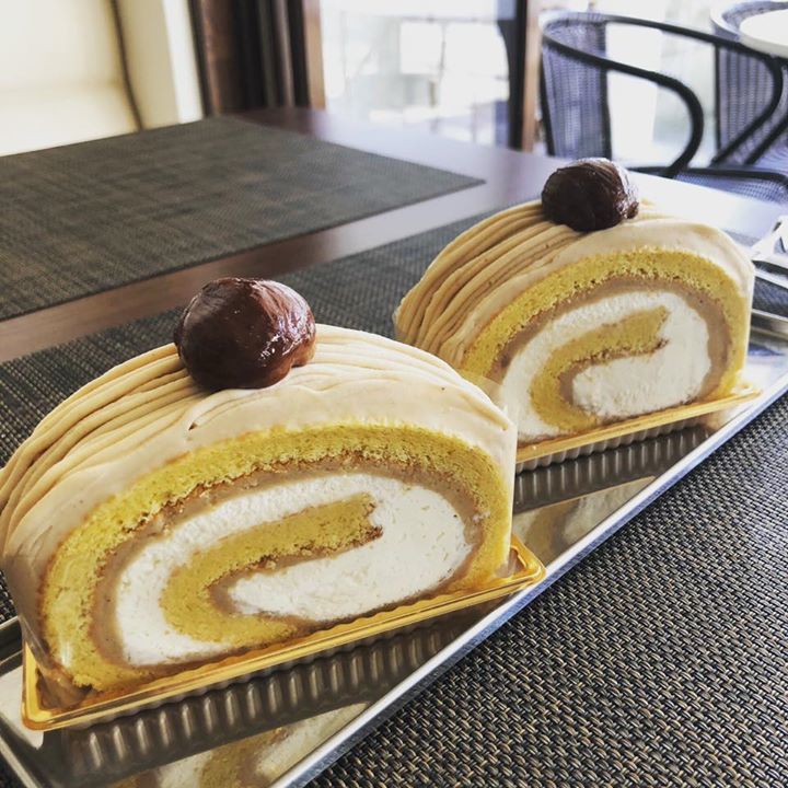 新作作りました。米粉のロールケーキです。クリームは栗のクリーム 生クリーム ラム酒の効いた栗のクリーム3種類です。