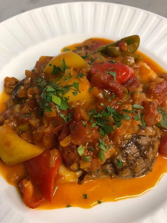 写真はランチの肉料理 豚肩ロースのバスク風です。