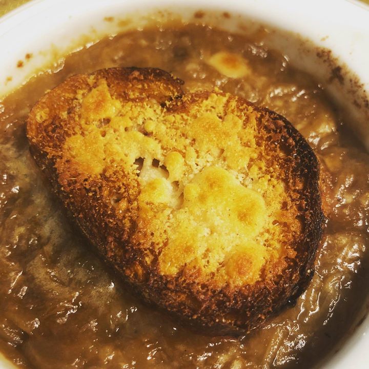 オニオングラスープの仕込み終了しました。40個の玉ねぎをここまで炒めてキャラメル色に仕上げます。コクと甘みを引き出します。寒くなる時期に芯から温まりますよ。#オニオングラタンスープ #リヨネーズ #玉ねぎ #スープ #オードブル #レストラン #リーヴルディマージュ #ディマージュ#名古屋市天白区 #フレンチ#ビストロ @ リーヴル ディマージュ