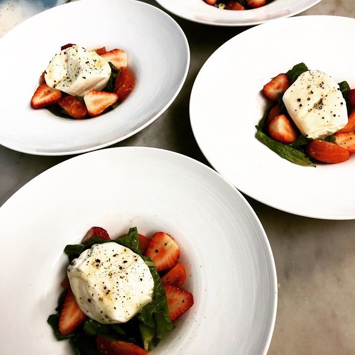 昨日のディナーのおまかせコース料理のオードブル。イタリア産モッツァレラチーズ🇮🇹ブラータとイチゴとフルーツトマトのサラダ🥗今日は定休日。明日からまた頑張ります。昨日見れなかったドラマ グランメゾン東京 さっき見終わりました。このドラマに今はまってます。ひじょーにいい^_^ このセリフのドラマにも🤗#リーヴルディマージュ #名古屋市天白区 #サラダ #モッツァレラチーズ #ブラータチーズ #トマト #フルーツトマト #いちご #オードブル#フレンチ #ビストロ #レストラン