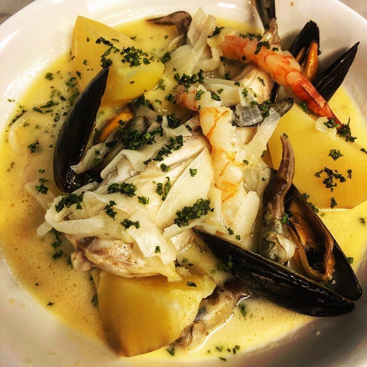 今日は肌寒いですね。温かい料理でおもてなししています。魚料理は定番になりつつあるコトリヤード ブルトンです。ブルターニュ風ブイヤベースと呼ばれる料理で生クリーム 白ワイン ブイヨンで魚介と野菜を軽く煮込みます。今回はトラフグを中心にムール貝や海老などと合わせています。仕入れで魚介は変わります。#ブイヤベース #生クリーム #魚 #魚介 #魚料理 #名古屋市 #名古屋市天白区 #リーヴルディマージュ#レストラン #フレンチ #ビストロ #フランス料理 #パティスリー #ケーキ屋さん #デザート