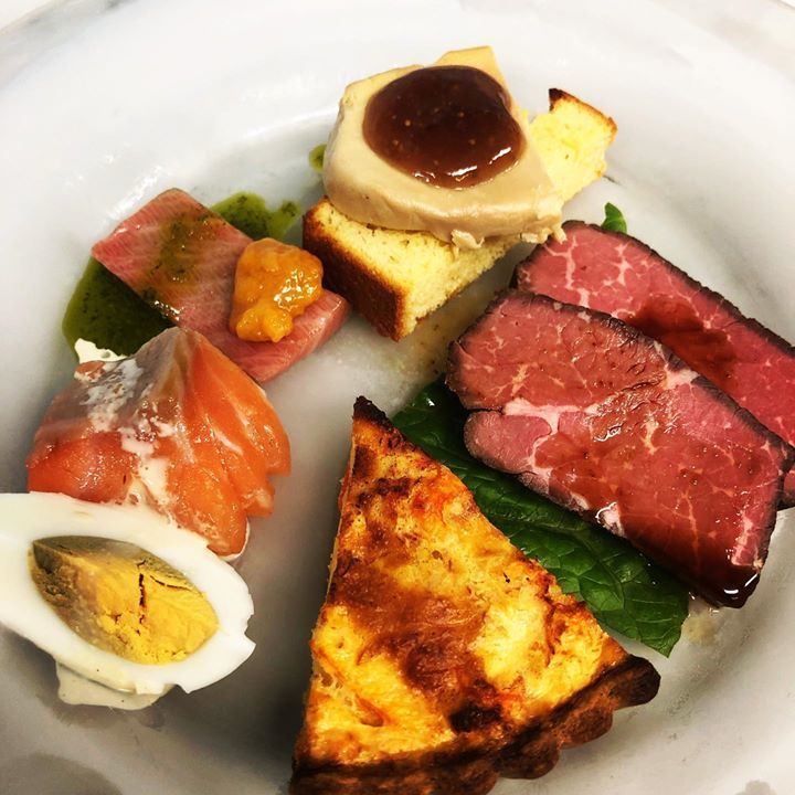 写真は今年のクリスマスディナーの内容です。来年の為に記録として。オードブルは低温調理を主とした盛り合わせです。フォアグラ マグロ サーモン キッシュ 牛肉です。