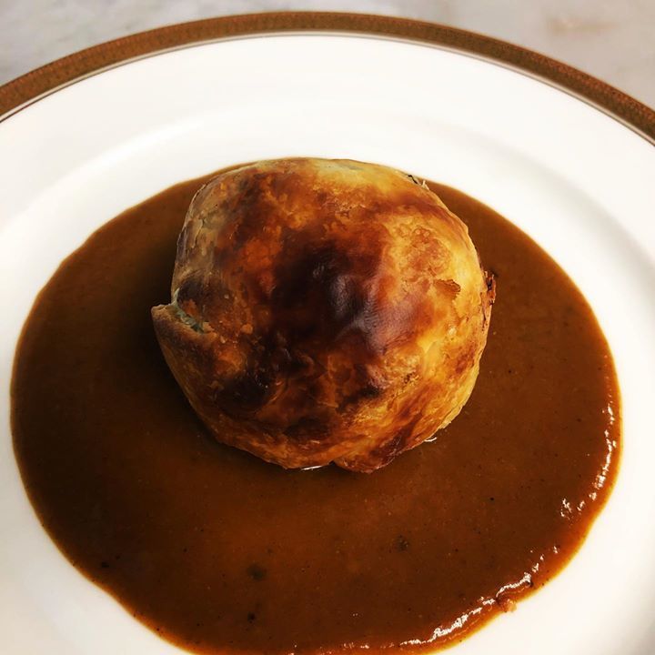 フランス ロゼール産の乳のみ子羊とフランス産キノコ3種類のパイ包み 仔羊のジュと合わせたカレーソース。