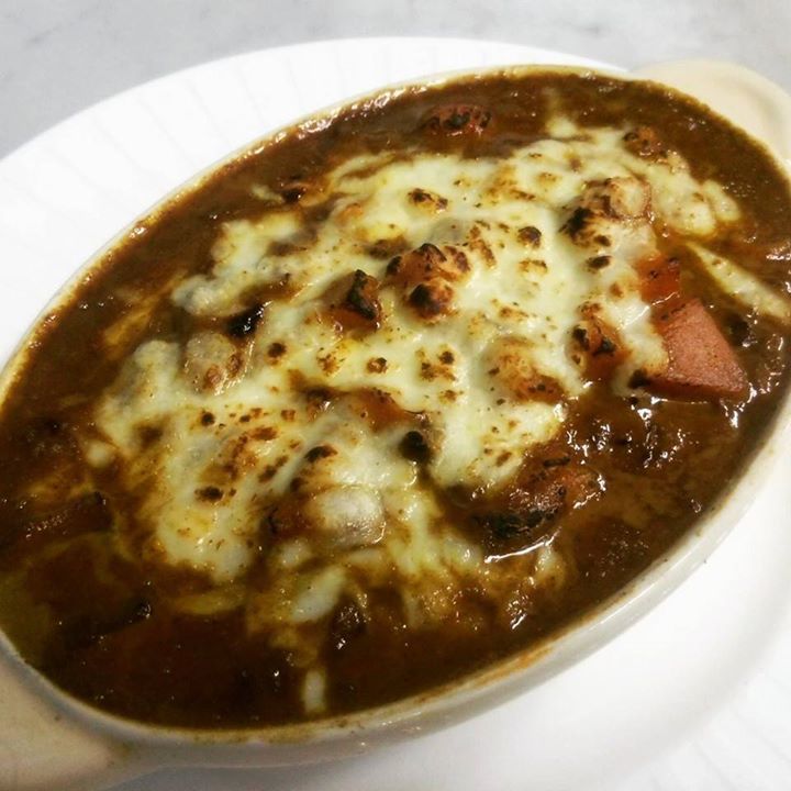 賄いの焼きカレードリア。形を変えてメインの料理に変わります。賄いは大事な練習の場になるのです。賄い係りはアイデアを実戦できる最高な機会をもらっているのです。気付くのに10年かかりましたが(≧▽≦)