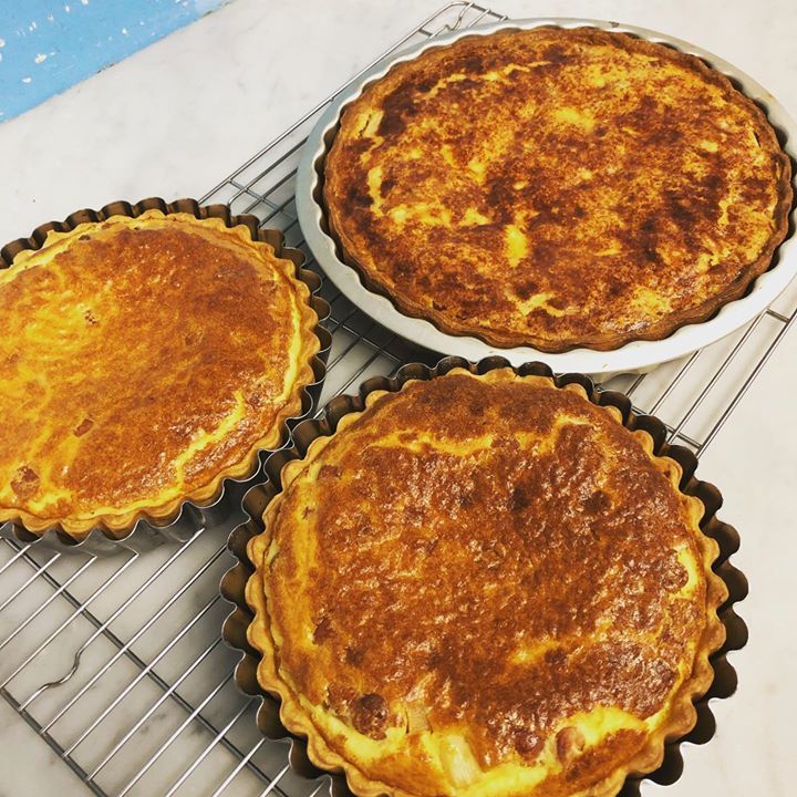 焼きあがったフランス🇫🇷産ホワイトアスパラガスと松坂ポークのソーセージのキッシュ。デビューしたら即完売しました。予約2件だけだったのに終わったら満席超えてました。ありがとうございました😊疲れました。日曜日のランチは満席になっていますが時間によっては受け入れ可能な時間もあります。#リーヴルディマージュ#キッシュ #アスパラガス #ホワイトアスパラガス #豚 #ソーセージ #松阪 #松坂ポーク #人気 #オードブル #満席 #疲れた