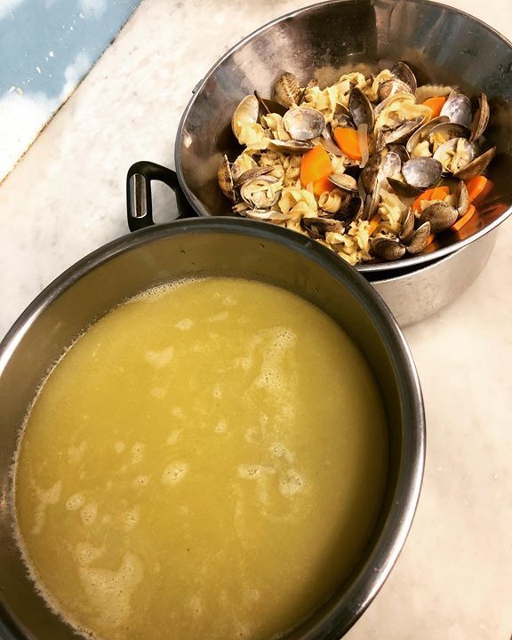 今日最後の仕込みはアサリと帆立貝のヒモで取ったジュです。主にスープやソースに使います。ランチやディナーのコース料理🍽写真載せようと思ってすっかり忘れてました。来週はメニューがガラッと代わっています。