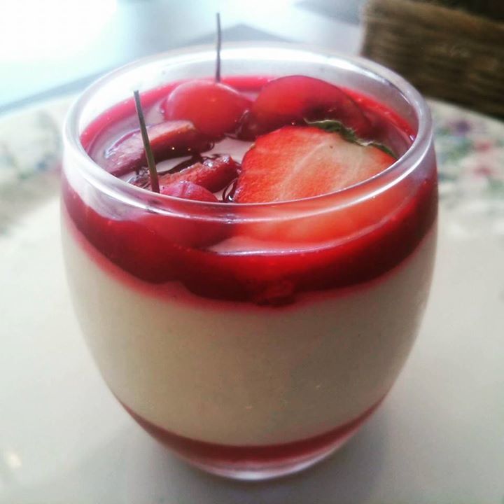 夏向けの新作ティラミスです。木苺のジュレ、ティラミス、赤いフルーツのソースと赤いフルーツ。とても柔らかいのでガラスの器に入れて。