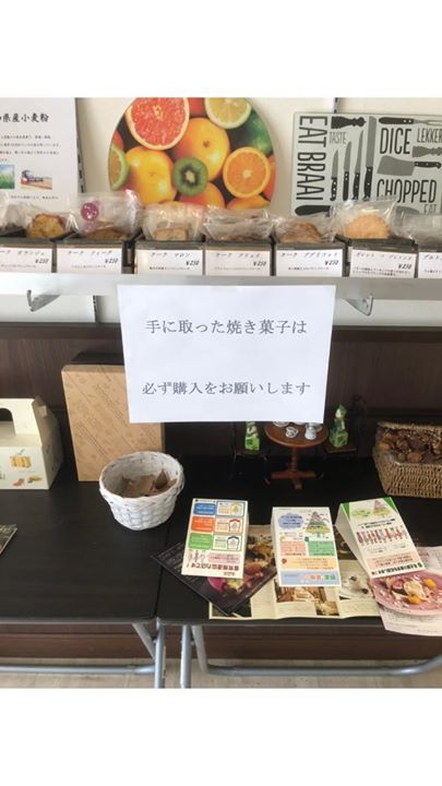 お店からのお願いですが、焼き菓子など一度手に取ったものは戻さずそのまま購入してください。今の時期は手に取ったものは買取してもらっています。とてもきつい言い方で申し訳ありませんが、そんな事ぐらいと思われるかもしれませんが、購入されないなら手にはとらないでください。ご協力おねがいします。ただ入ってきて色々触って帰るお客さんが増えてきましたので購入されないのなら手に触れるのは遠慮下さい。