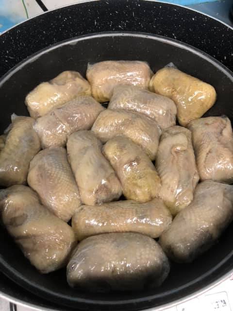 写真は松坂豚と🐖キャベツを鶏皮で包んだ餃子仕立てです🥟