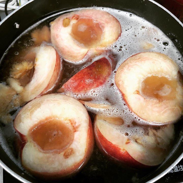 写真は川中島白桃のコンポートの仕込みです。