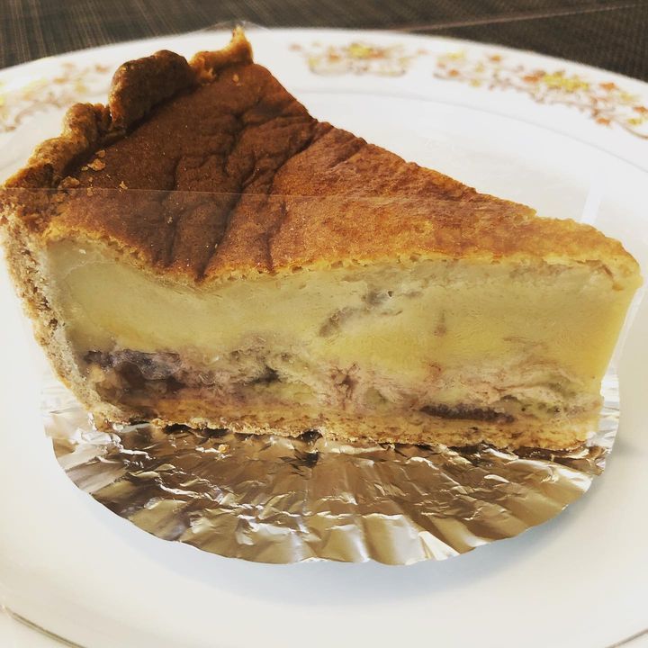 バナナとレーズンをバターとラム🥃でフランベしてコーヒー風味の☕️クラフティー生地と合わせて焼いたもの。