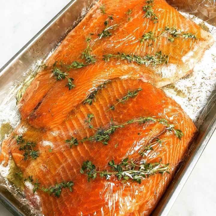 タイム 塩 胡椒 蜂蜜でマリネしたサーモンはほんのり甘く脂も乗って美味しく出来上がりました。