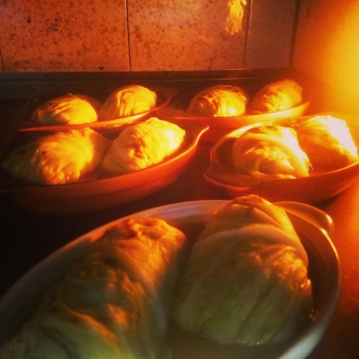 肉料理の仕込み。宮崎県産の日南鶏を使った焼きロールキャベツです。粗めに挽いたモモ肉と白レバー、ハツ、胸のミンチをキャベツで包んでフォンドヴォーとコンソメのソースで蒸し焼きします。仕上げにマスカルポーネと生クリームのシャンティーをかけてグラチネします。