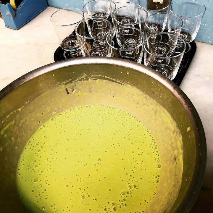 写真はアスパラガスのブランマンジェの仕込みです。