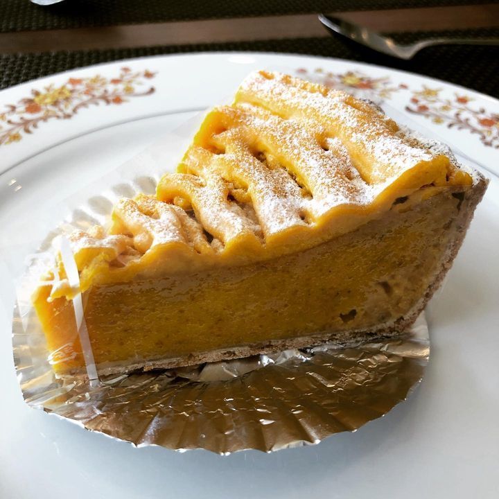 北海道産のかぼちゃに🎃数種類のスパイスと卵と生クリームを合わせたアパレイユをタルト生地に流して焼き上げ、かぼちゃのバタークリームを絞りました。
