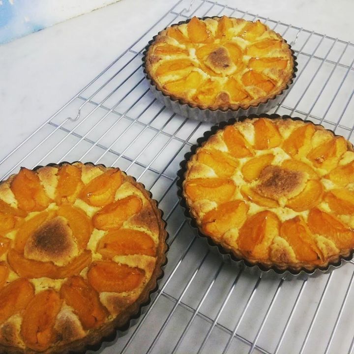 フレッシュのアプリコットが入荷しましたので焼きタルトにしました。今はフルーツはフレッシュを乗せた物を中心に仕込んでいますので焼いたフルーツのタルトは久々に出します。