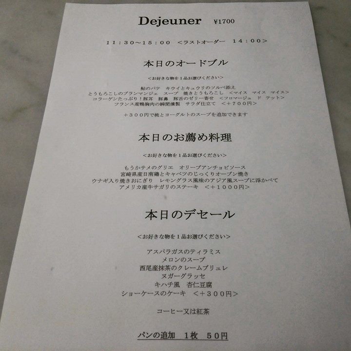 本日のランチメニュー