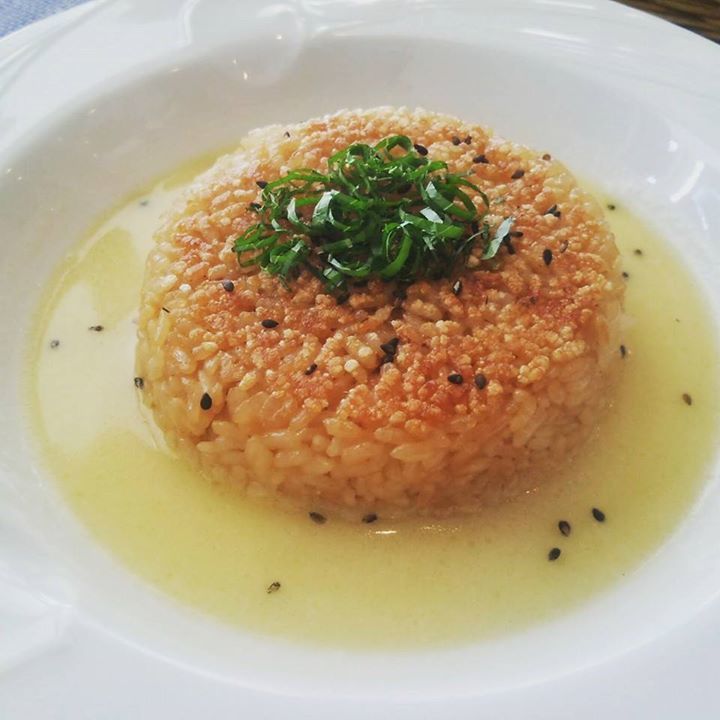 夏向けメイン料理の一品。うなぎの焼きおにぎり アジア風スープ レモングラス風味です。アルバイトさんに美味しいと好評でした。