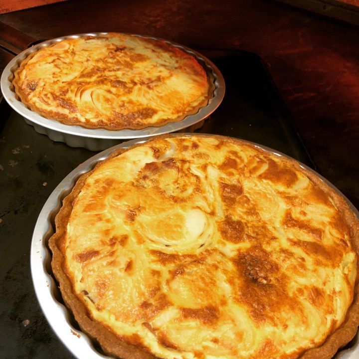 ランチで提供する新しいキッシュを焼いています。