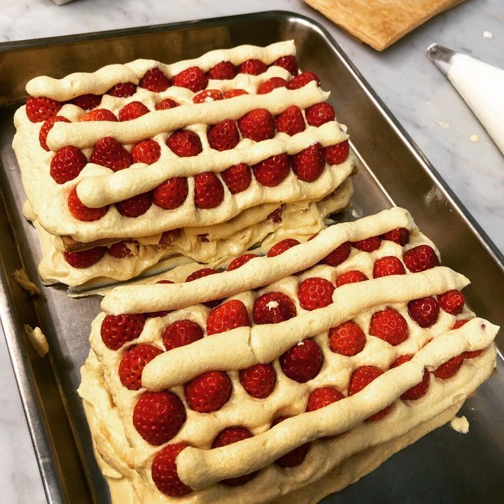 この間読んだトロワグロの本に出ていたデザートを僕なりに変化させたタルトです🥧ベースはアルザジエンヌです。