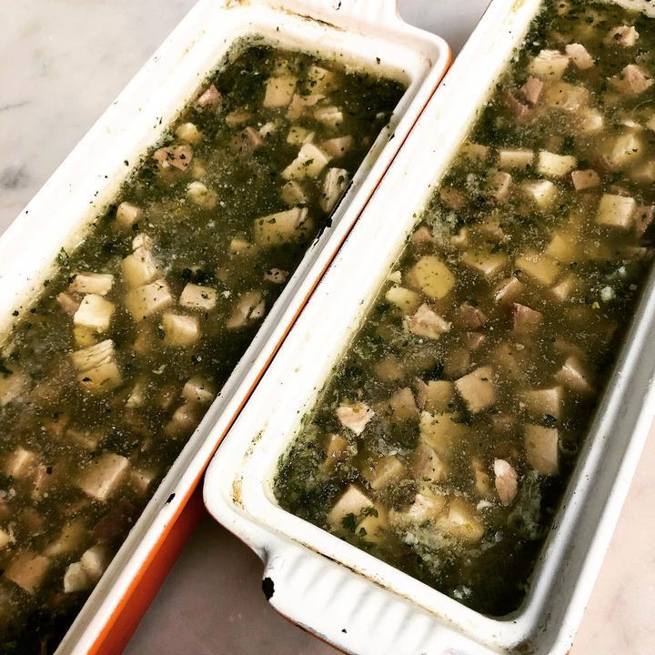 イタリア産ファッソーネ子牛の舌のハムとパセリのゼリー寄せです。
