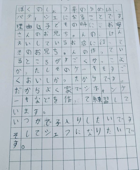 母からLINE が届いたので何かな?と見たら、甥っ子の作文の写しでした。