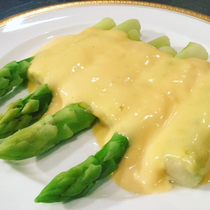 茹で上げアスパラガスのオランデーズソース。フレンチの定番料理です。長野県産の大きくて美味しいアスパラガスが手に入りました。今あるだけです。ランチ ディナーどちらでも無くなるまで出せます。冷えた白ワインやシャンパンと合わせると最高ですね!