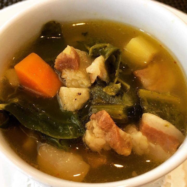 今回はイタリア産のカーボロネロ“黒キャベツ”やトピナンプール“菊芋”なども入荷しましたので伝統的なスープを自分なりに少し手を加えて具沢山のスープにしました。
