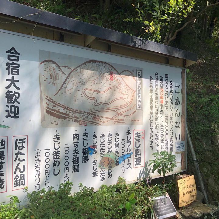 入り口にキジ料理の旅館があって、キジの炊き込みご飯のテイクアウトがあったので探索してる間にお願いして持ち帰りしました。