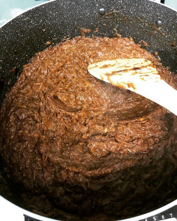 4時間以上ゆっくり火を入れて玉ねぎをキャラメル色に仕上げて甘みを引き出しています。