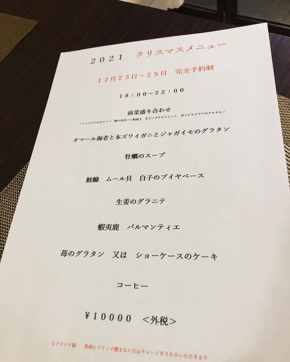 クリスマスディナの内容の問い合わせがありますので、メニューのせます。