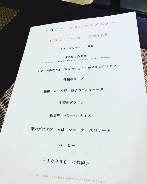 クリスマスのディナーは23〜25日は10000円のコースのみです。