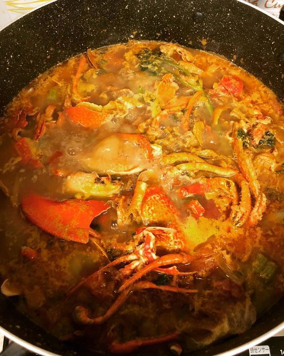 オマールの殻や甘エビの殻やコライユなどたくさん溜まったのでアメリケーヌソースを仕込んでます。