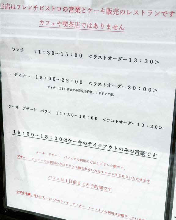 ケーキの販売するパティスリーで、カジュアルフレンチ営業のレストランです。