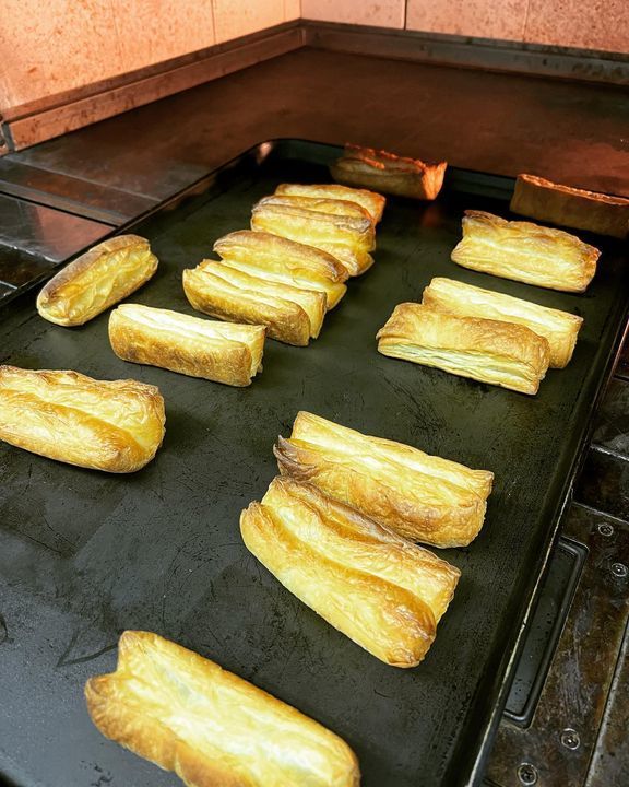 いちごとミントアイスのミルフィーユ用のパイ焼き上げました。