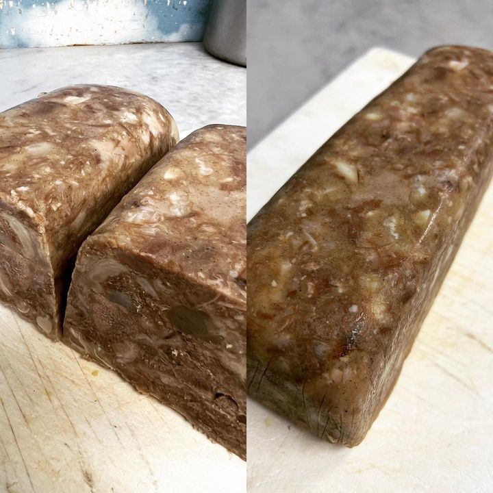 写真は豚耳 豚舌 豚頰肉 豚足のゼリー寄せです。