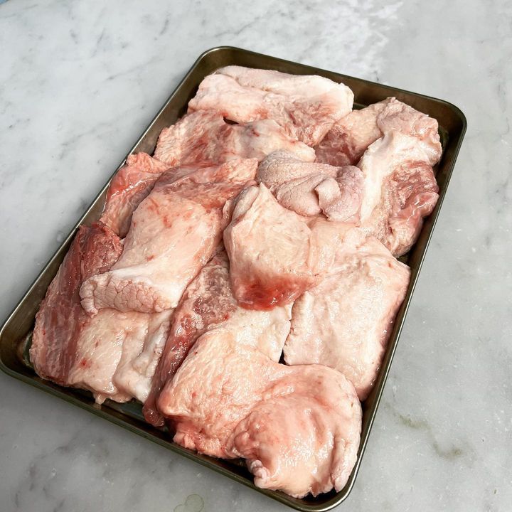 香草 香辛料 ワインでゆっくり煮てスライスしてサラダにしたりベーコン風に仕上げます。