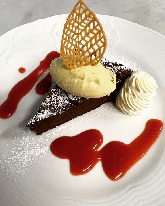 ガトーショコラ ピスタチオのグラス添え