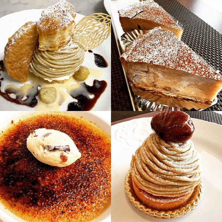 写真はイートイン用の栗のデザートとテイクアウトの栗のケーキです🌰🧁🍰