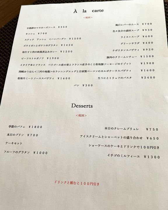 ディナーはこのメニュー+ディナーアラカルトか8000円のシェフおまかせメニューです