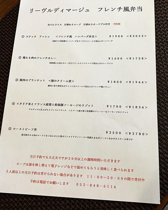 13:30〜20:00の通しメニューと12月7日からの弁当のメニューも載せておきます