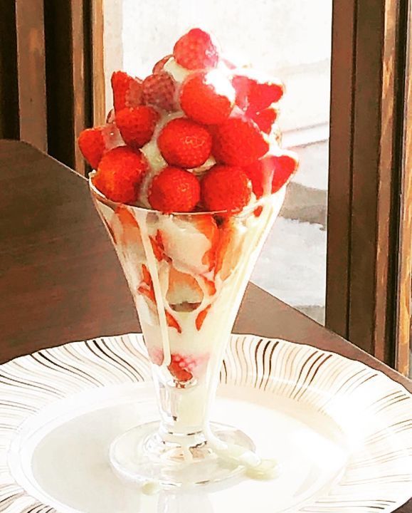 いちごの🍓入荷が安くありましたので今日からいちごのパフェ始めます