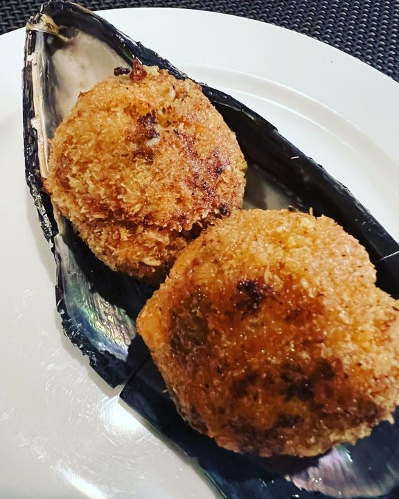写真は鮑とムール貝のカレー風味のクリームコロッケです