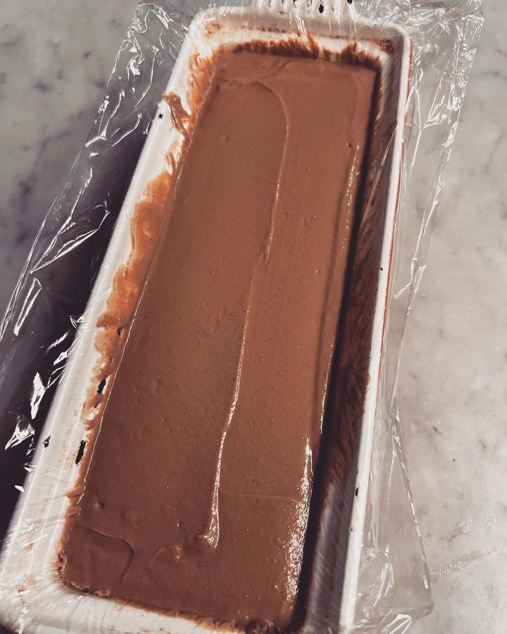 ブリオッシュは鶏白レバーのムースをテリーヌにして温めたブリオッシュに重ねてオードブルで提供します