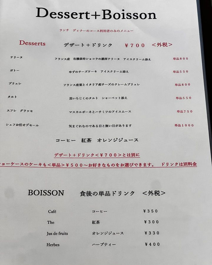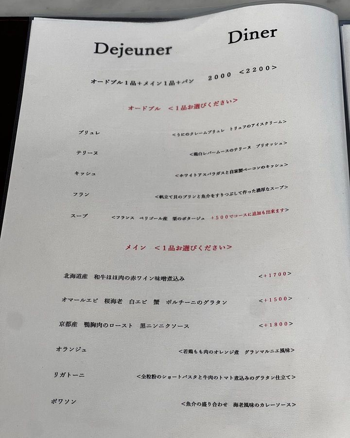 2000のプリフィクスコースはランチもディナーも値段 内容は同じです