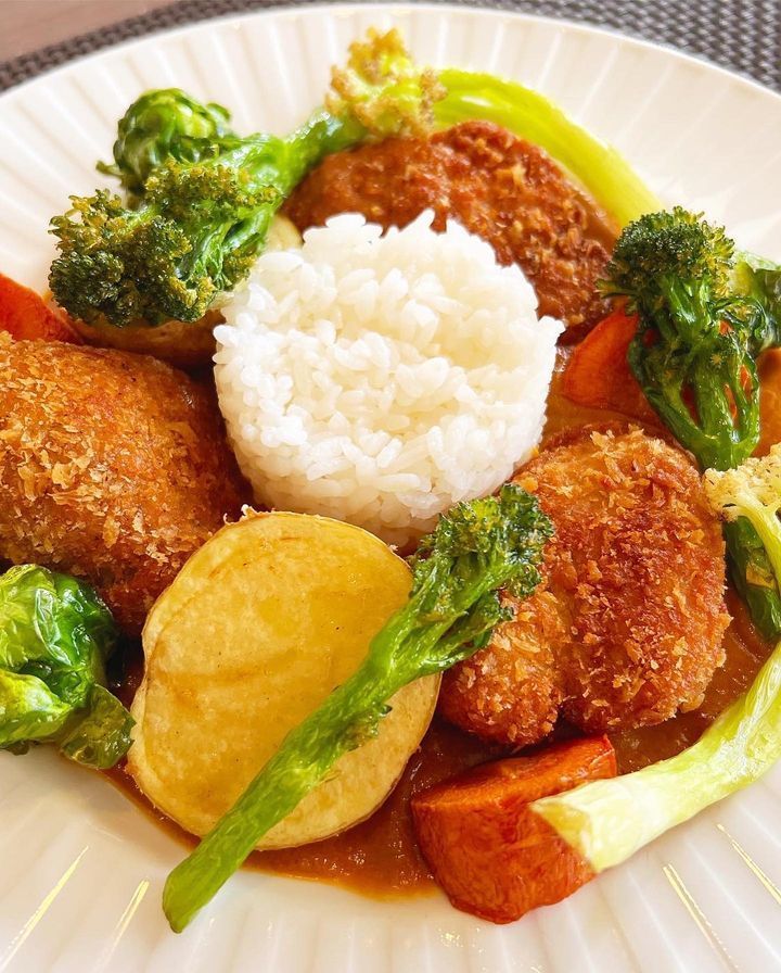 カレーソースはフランス産キノコと宮崎県産和牛のカレーソースです