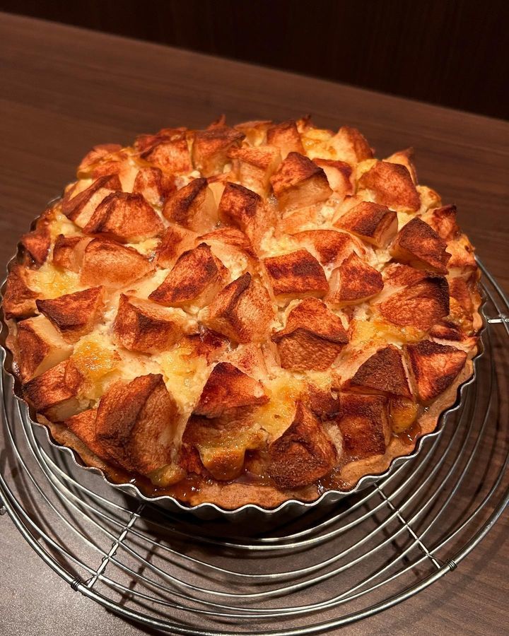 ざく切りにしたリンゴをシナモンシュガーと合わせて焼き上げたタルトです
