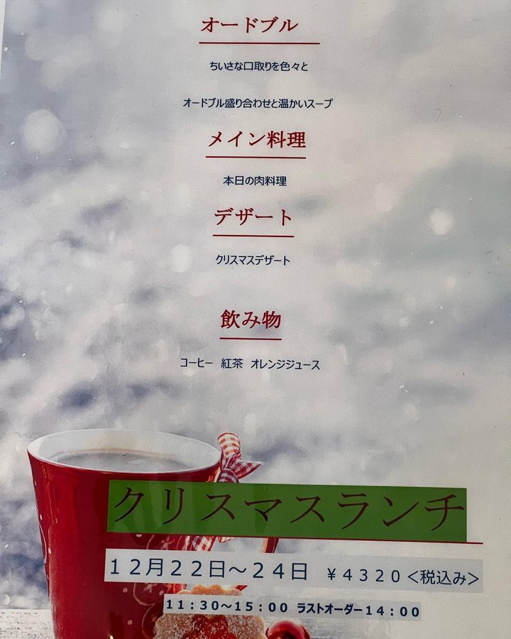 クリスマスコースもクリスマスケーキもまだありますので予約お願いします