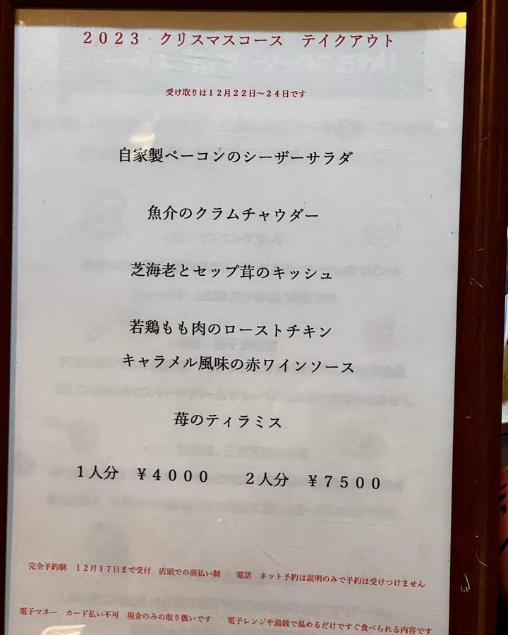 クリスマスコースの持ち帰りと年末年始のオードブル盛り合わせの予約注文も受け付けています